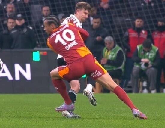 Galatasaray, Beşiktaş derbisinde VAR incelemesinin ardından 10 kişi kaldı. Leroy Sane, kırmızı kart gördü.