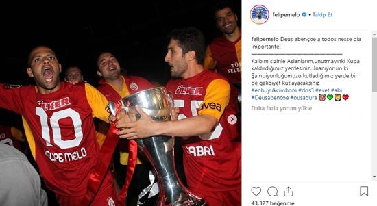 Melo, paylaşımında ''Kalbim sizinle aslanlarım. Unutmayın ki kupa kaldırdığımız yerdesiniz... İnanıyorum ki şampiyonluğumuzu kutladığımız yerde bir de galibiyet kutlayacaksınız.'' sözlerini kullandı.