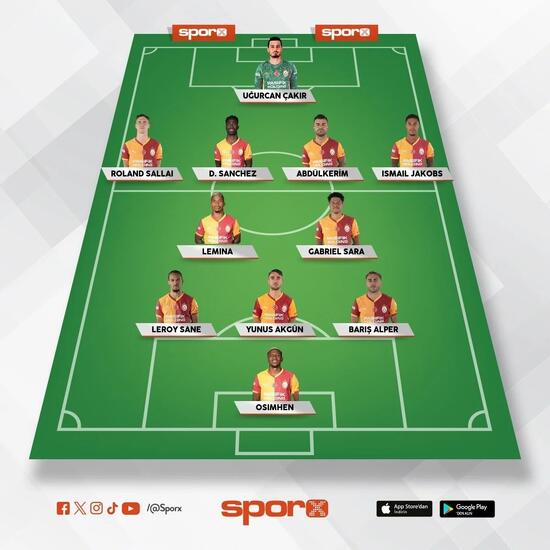 Galatasaray: Uğurcan, Sallai, Davinson, Abdülkerim, Jakobs, Lemina, Sara, Sane, Yunus, Barış Alper, Osimhen.