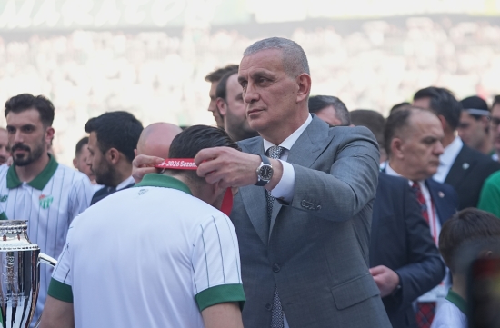 Bursaspor'a madalyalarını ve şampiyonluk kupasını Türkiye Futbol Federasyonu Başkanı İbrahim Hacıosmanoğlu takdim etti.