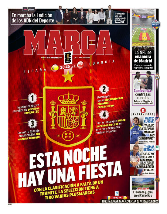 İspanya, Dünya Kupası yolunda evinde oynadığı eleme maçlarında hiç yenilmeyen tek milli takım olma hedefiyle karşı karşıya. Şu anda 63 maçta olan bu seriyi uzatmak, 2030'da ev sahibi ülkelerden biri olacak İspanya'nın Suudi Arabistan'da düzenlenecek Dünya Kupası elemelerine başlayacağı 2033 yılına kadar devam etmesini sağlayacak.