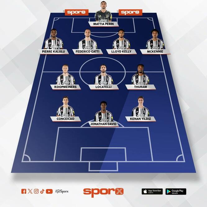 Juventus : Perin, Kalulu, Gatti, Kelly, McKennie, Koopmeiners, Locatelli, Thuram, Conceiçao, David, Kenan Yıldız