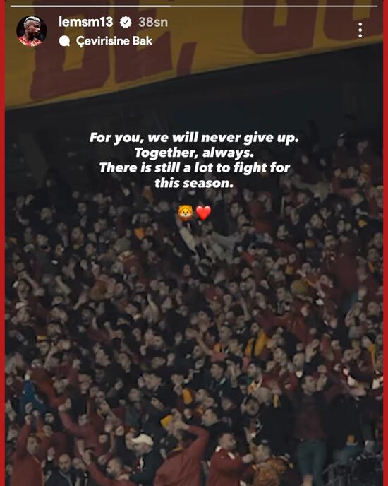 Taraftarların tezahürat yaptıkları bir anı paylaşan Gabonlu futbolcu, "Sizin için asla pes etmeyeceğiz. Her zaman birlikte. Bu sezon için hala mücadele edilecek çok şey var." ifadelerini kullandı.