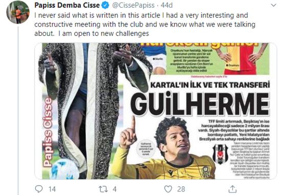 Alanyasporlu Papiss Cisse, kişisel twitter hesabından yaptığı açıklamada kendi yaptığı son röportajı yalanladı ve yeni maceralara açık olduğunu söyledi.