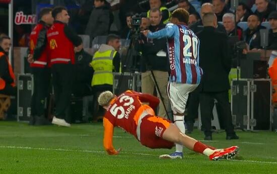 Trabzonspor-Galatasaray maçında Barış Alper Yılmaz, Wagner Pina'ya faulü sonrası sarı kart gördü; VAR incelemesi sonrası karar değişmedi.