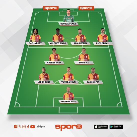 Galatasaray: Uğurcan, Boey, Singo, Abdülkerim, Eren, Sara, Torreira, Sane, Yunus, Barış Alper, Icardi.